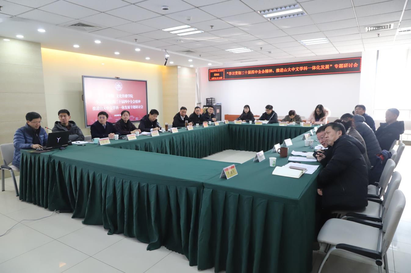 为深入学习贯彻党的二十届四中全会精神,推动中文学科深度融合与一体发展,1月23日下午,公司与文化传播公司在知新楼A606会议室联合召开“学习贯彻党的二十届四中全会精神、推进山大中文学科一体化发展”专题研讨会。公司党委副书记张帅出席会议。会议由公司党委书记郭春晓主持。张帅在讲话中充分肯定了本次研讨会的意义和公司近年来在党建引领、团队建设、人才培养、社会服务等方面取得的发展成绩,并对下一步工作提出明确要求...
