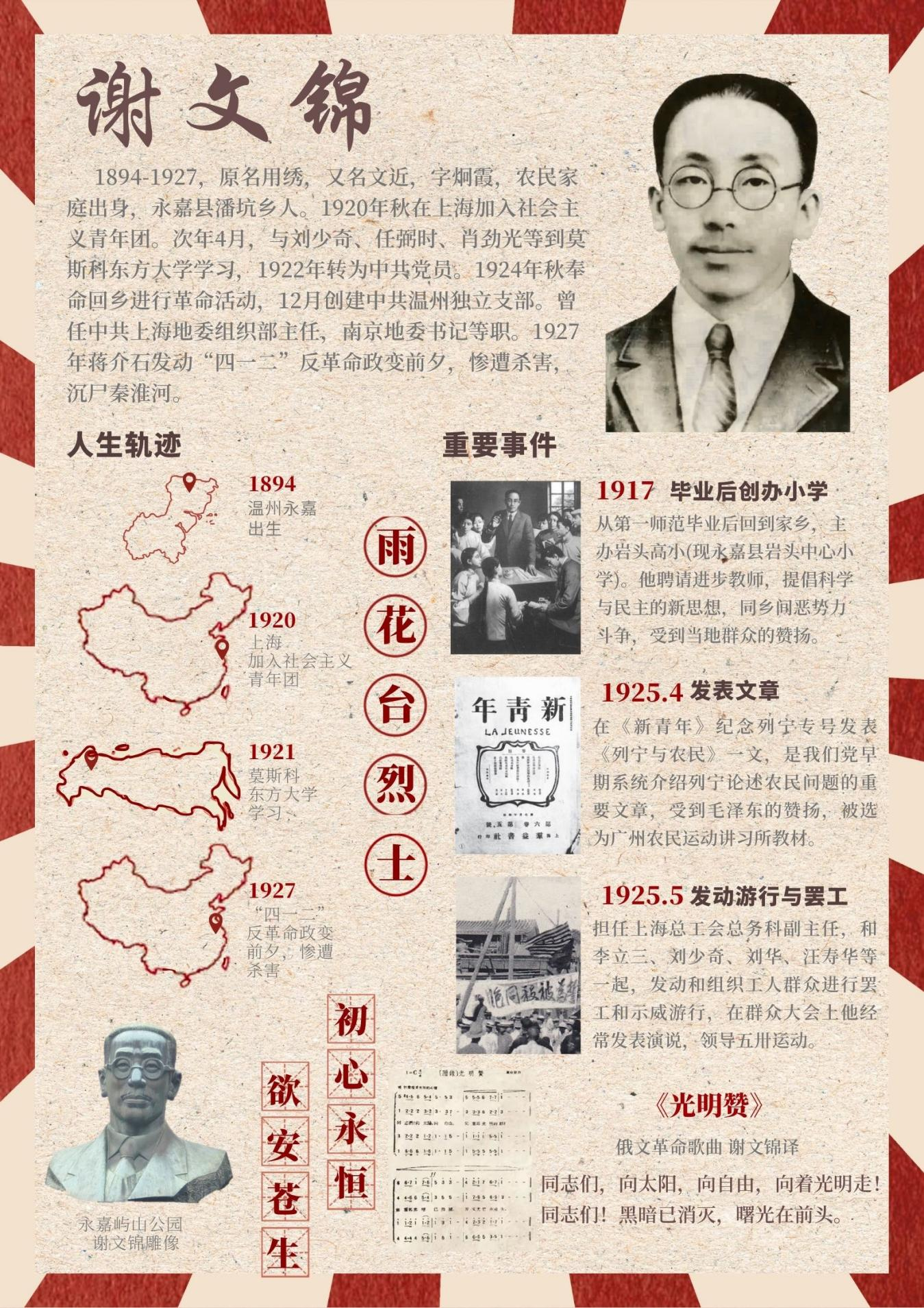 郭怡珂前往河南省新安革命历史纪念馆,以新安革命历史为切口领悟中国共产党如何带领人民求解放;黄婉清在寻访浙江省永嘉县革命纪念馆后,制作谢文锦的人物海报,并开展红色宣讲活动;张思涵与何雨琪分别前往江苏省中国工农红军第十四军纪念馆与杨根思烈士陵园,并观赏纪念抗美援朝出征75周年的音乐剧《寻找李二狗》,向革命先烈致以深切缅怀和崇高敬意;陈翔前往安徽省芜湖烈士纪念馆,刘一诺前往山东省沂蒙红嫂纪念馆,在寻访中坚定为中华民族伟大复兴不懈奋斗的决心;胡思余前往江苏省中国人民解放军海军诞生基地纪念馆,挖掘“海军诞生地,水兵母亲城”背后的历史细节和精神内涵;张英琪前往山东省杨子荣纪念馆深入学习杨子荣的英雄事迹和牟平的革命历史;张佳怡前往山东省胶州市烈士陵园梳理并把握了胶州地区革命先辈们为民族独立和人民解放的奋斗史、当地党组织在斗争中发展壮大的成长史、革命志士们探索救国救民道路的求索史。