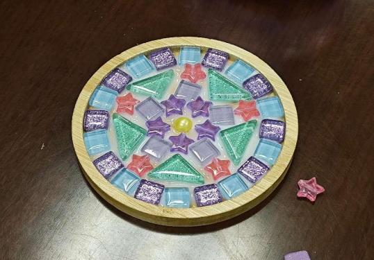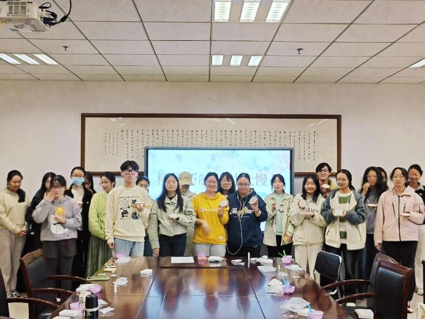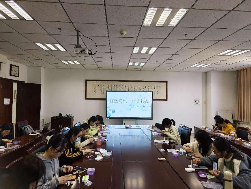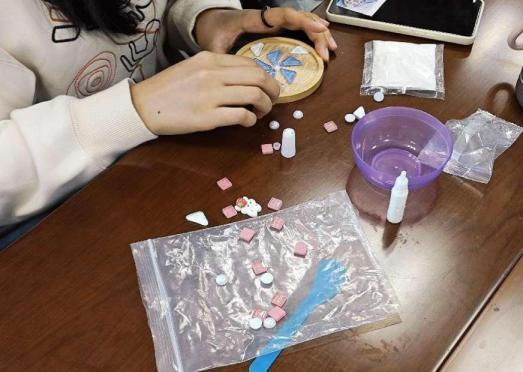活动开始前,调研权益部成员提前分发制作杯垫所需的DIY材料。活动过程中,同学们围坐桌前,以水晶玻璃点缀趣味元素,将对日常美好的理解与巧思融入方寸杯垫。现场氛围轻松惬意,大家在动手实践中充分体会“时光慢品”的惬意,也收获了专属的实用手作。