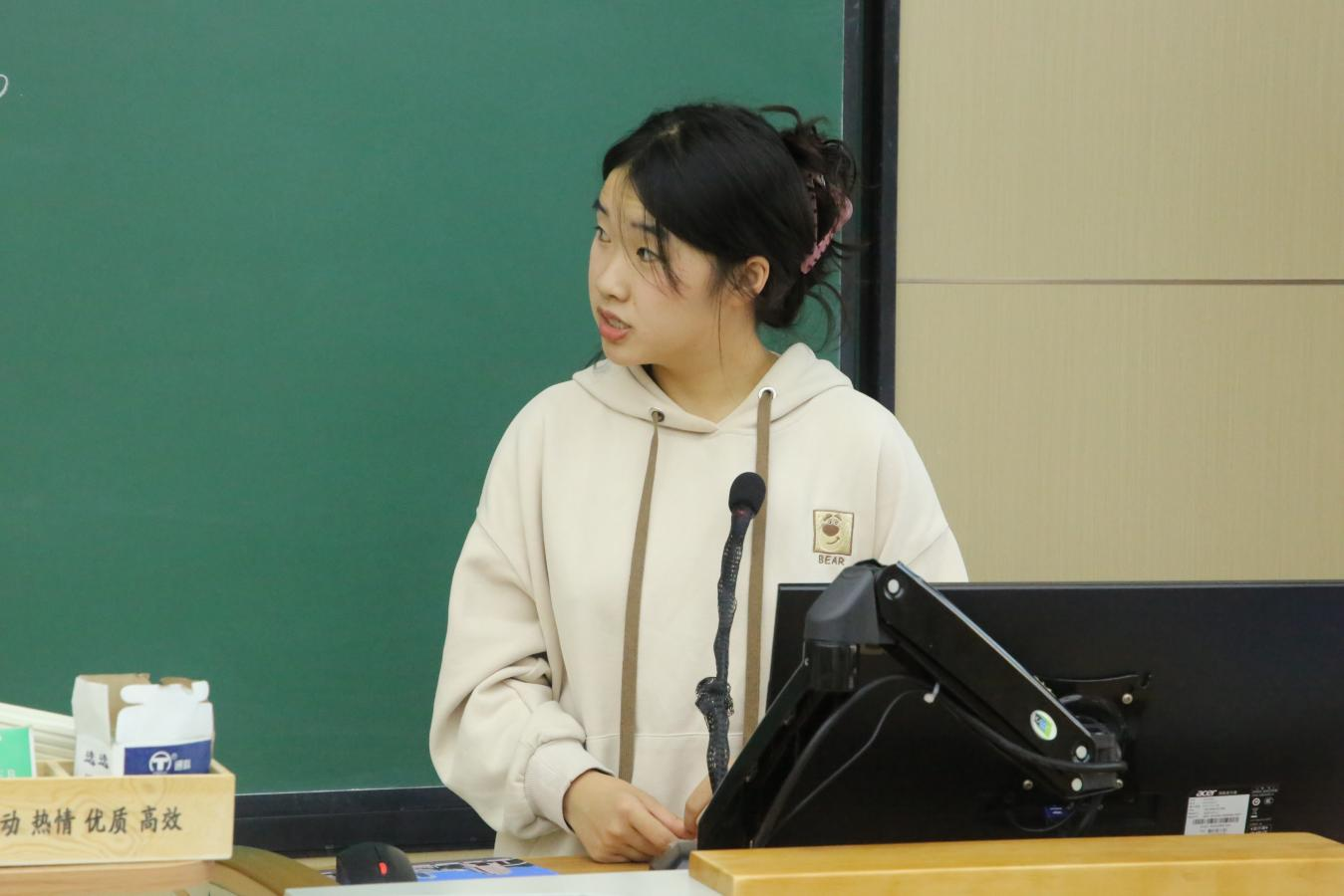 随后,2023级本科生冯小宇围绕发挥专业优势、推动项目落地等核心问题,分享了她在赛事中的历练与思考。她结合具体案例,阐述了如何将专业知识转化为项目特色,以及在资源整合、团队协作中实现创意落地的有效路径。她勉励在场同学主动把握机会、深入实践一线,通过持续探索积累经验、锻炼能力,最终在创新实践中实现个人能力的全面提升与价值超越。