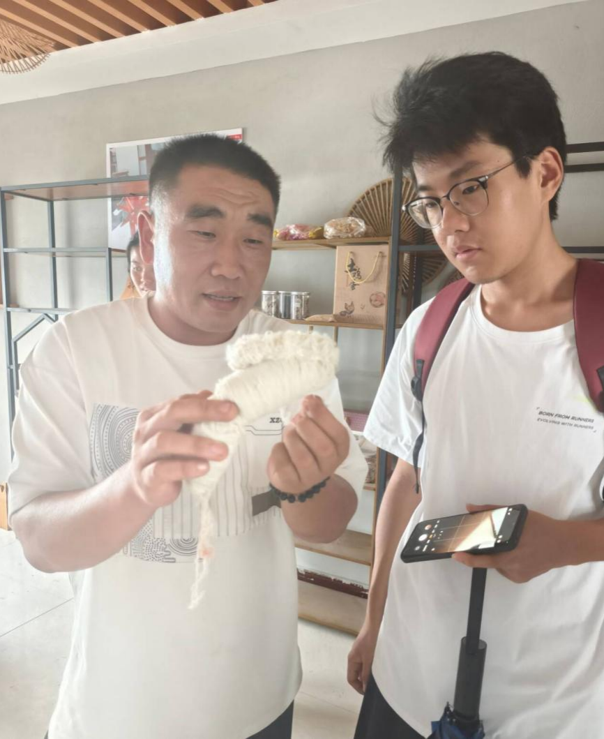 此外,团队进行文化溯源,聚焦省级非遗“沂蒙小棉袄”,采访其创始人吴照京,实地感受制作流程,并重点梳理其中体现的多民族文化交融元素。在进行历史遗存考证时,团队考察“2023年度全国十大考古新发现”跋山遗址和齐长城沂水段,进一步佐证了“多元一体”的文明格局。队员们走访“沂蒙红嫂”后人,传承弘扬沂蒙精神,感受红色文化在铸牢共同体意识中的纽带作用。