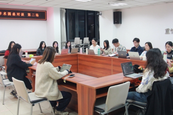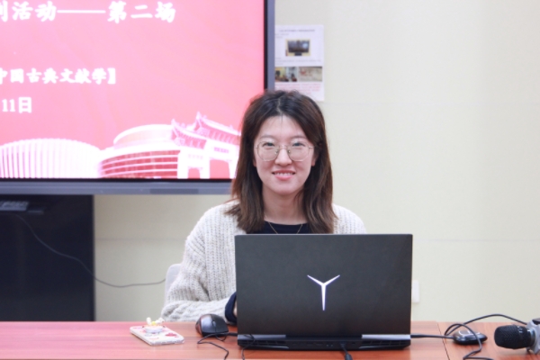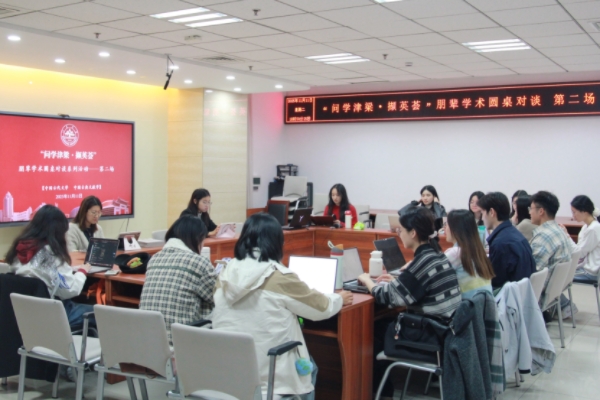 11月11日晚,公司于知新楼A606举办第二场“问学津梁·撷英荟”朋辈学术圆桌对谈活动。本次活动邀请中国古代文学专业硕士于心雨、中国古典文献学专业硕士郝展韬担任主讲嘉宾,学术部干事岳婉婷主持活动。