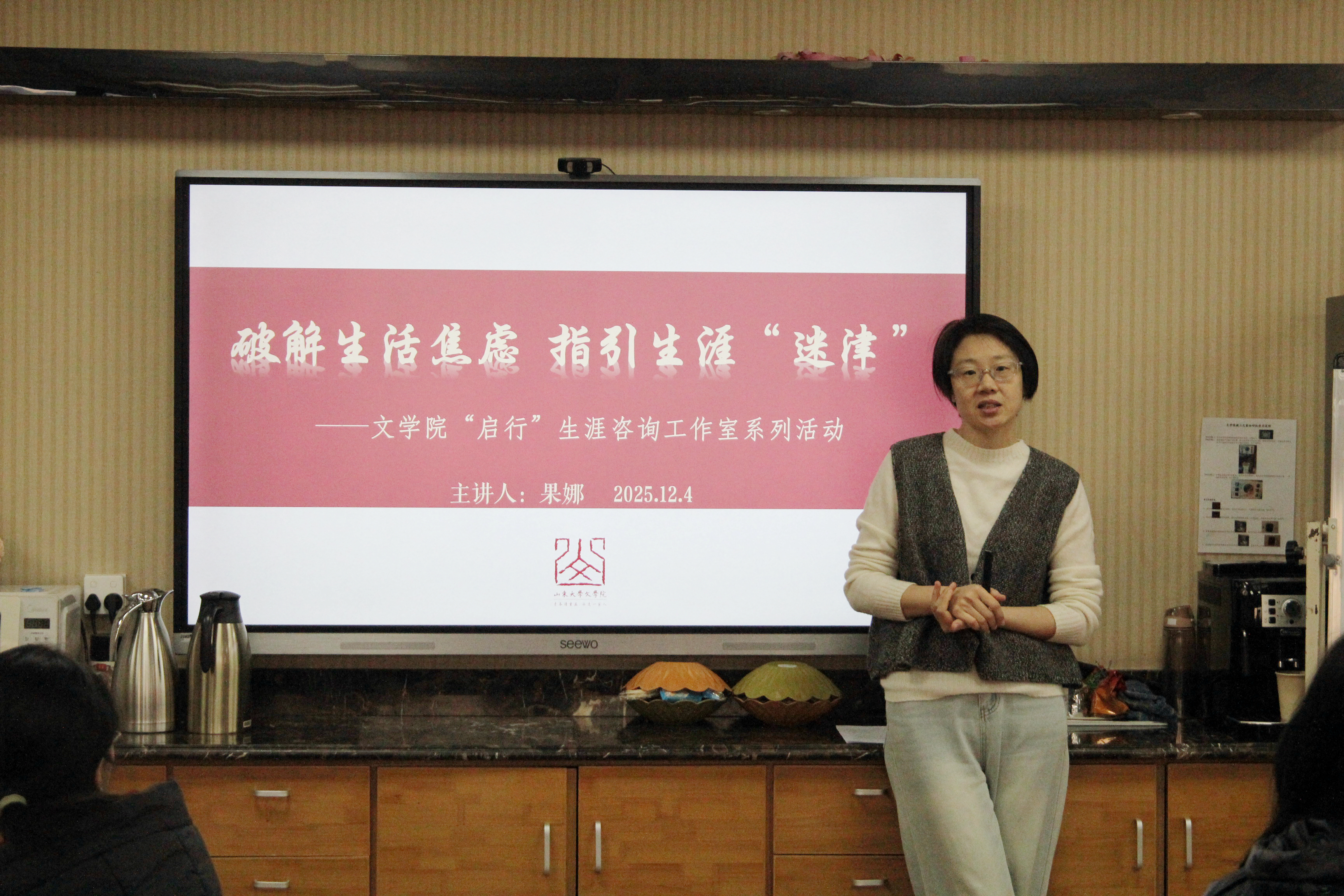为助力员工深入认识自我、明确就业方向、规划人生发展路径,12月4日下午,bwin必赢于知新楼A609举办“生涯训练坊”活动。本次活动聚焦“破解生活焦虑,指引生涯‘迷津’”这一核心议题,由bwin必赢“启行”生涯咨询工作室果娜担任主讲人。