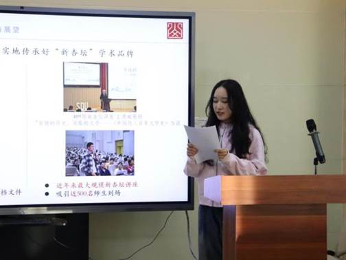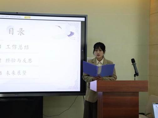 在部门述职环节中,综合服务部、宣传部、新媒体中心、学术部、实践部、文体部的部门代表依次登台汇报。各部门全面梳理了本学期核心工作成果,深刻反思了工作中存在的不足与短板,并结合部门职能明确了未来改进方向与工作重点。各部门始终紧扣“服务同学”的核心宗旨,彰显了研究生会立足同学需求、助力同学成长成才的责任担当,为后续各部门协同发力奠定了坚实基础。