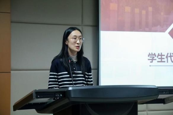 黄冠翔同学聚焦杜泽逊教授的文献整理工作,详细介绍了其荣获2024年“全国五一劳动奖章”背后的辛勤付出。他提到,杜教授主持的《十三经注疏》汇校工程已持续13年,三审三校一万多个版面亲力亲为,同时他还承担等多个重大项目。尽管科研任务繁重,杜教授仍坚持每周十余课时的教学工作,作为尼山学堂班主任关心每个员工的成长,诠释了学者将个人追求与国家需要相结合的责任担当。