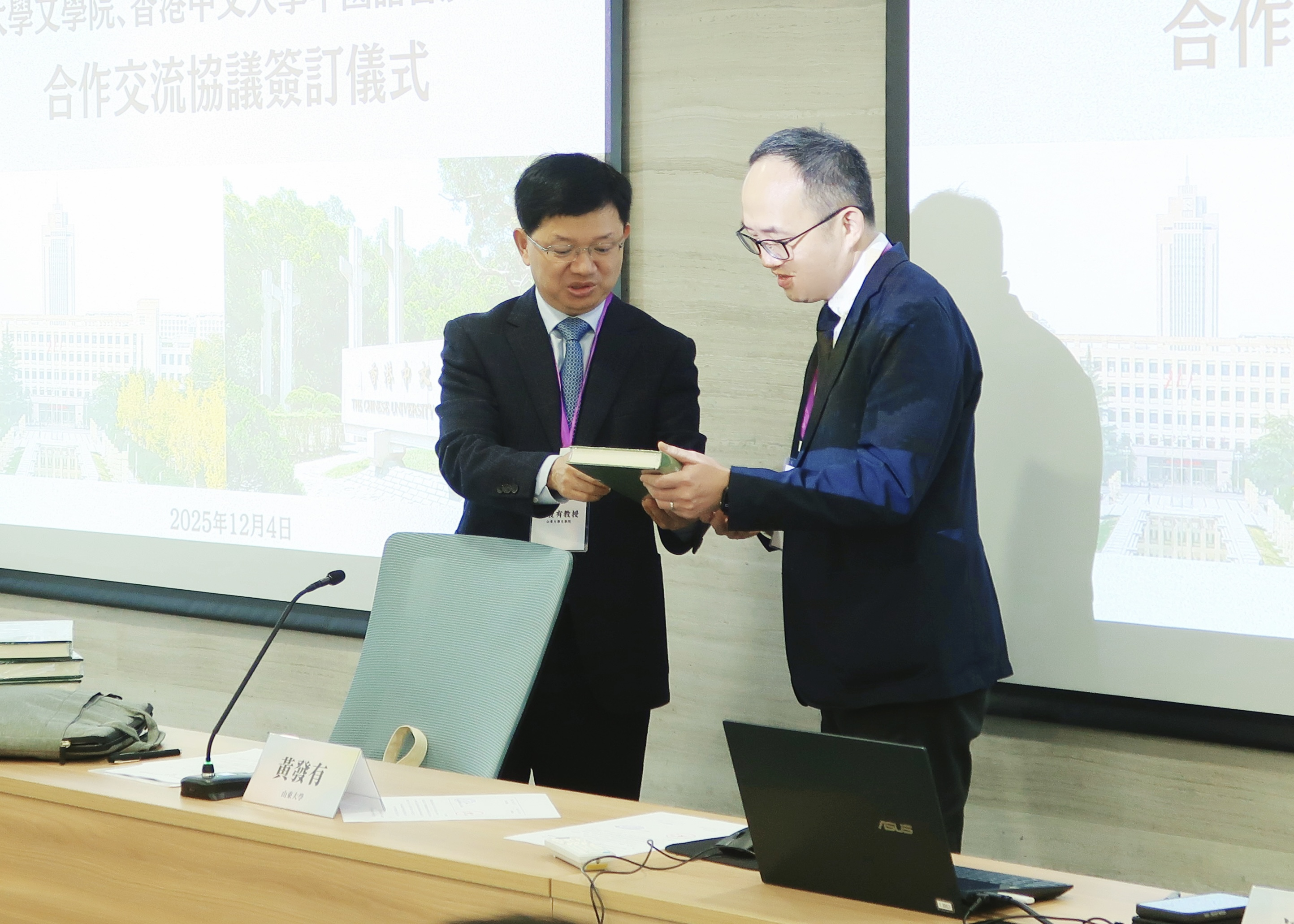 黄发有教授与香港中文大学中国语言及文学系主任潘铭基教授签署合作协议。长期以来,公司与香港中文大学中国语言及文学系有密切的学术往来。2025年,经过多次深入研讨和细致磋商,双方在学术科研合作、师生交流互访等方面形成了深度合作和常规化交流的共识。此次合作协议的签署,为这些共识的具体实施提供了制度化保障,也为公司与国际知名高校的深度合作做出了示范,将有力提升公司的国际化水平。