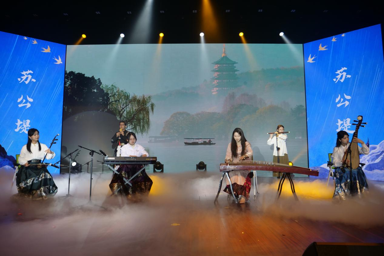 晚会正式启幕,各类节目精彩纷呈。歌曲《给电影人的情书》深情婉转,将赤诚情怀娓娓道来;小品《虎父无犬子》包袱密集、笑点十足,在欢声笑语中引发观众对“家庭教育”的深度思考;舞蹈《Drama》活力奔放、张力十足,舞者以流畅利落的舞步,将青春的张扬与洒脱展现得淋漓尽致;歌曲串烧《落叶归根》《飞云之下》曲风悠扬,勾起心底温情;器乐合奏《苏公堤》清雅空灵,乐声流转,尽显古典音韵的雅致之美与江南风光的诗情画意;歌舞串烧《Standing Next To You》《命不由天&王位》兼具动感与气势,诠释青春的热烈与不羁,点燃全场激情。