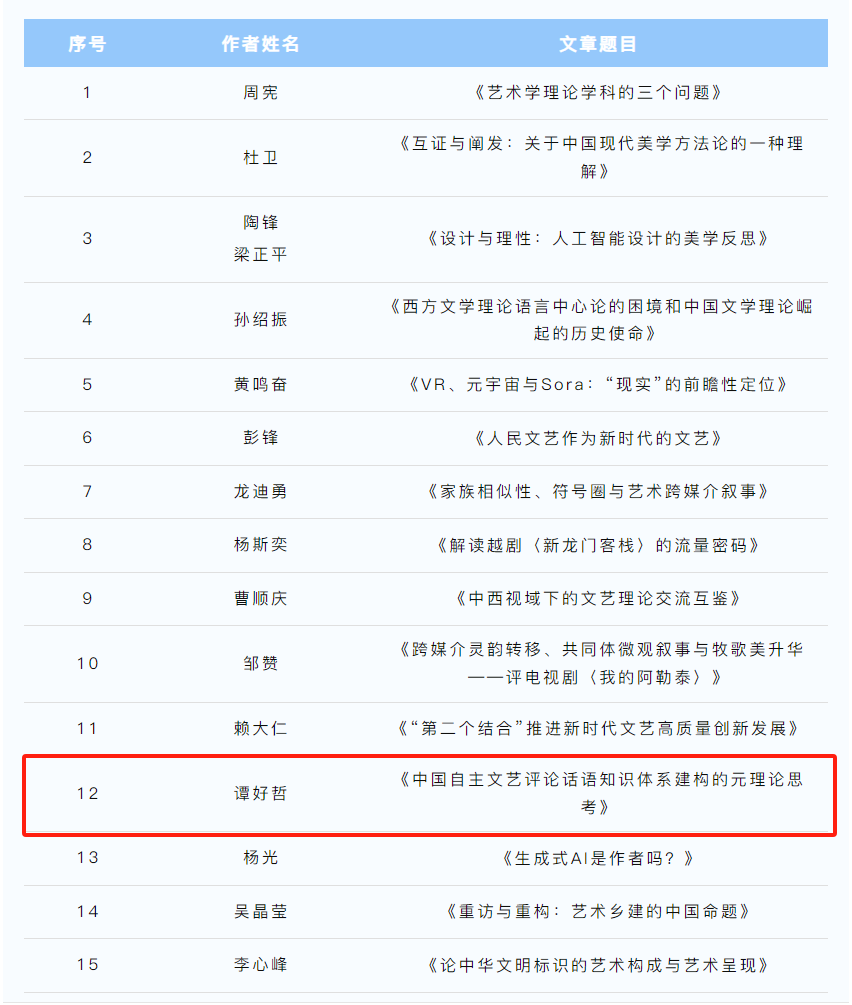日前,《中国文艺评论》编辑部公布了英文版《中国文艺评论精粹(第二卷)》译介项目的选文篇目,共有22篇,公司文艺美学研究中心谭好哲教授的文章《中国自主文艺评论话语知识体系建构的元理论思考》入选。