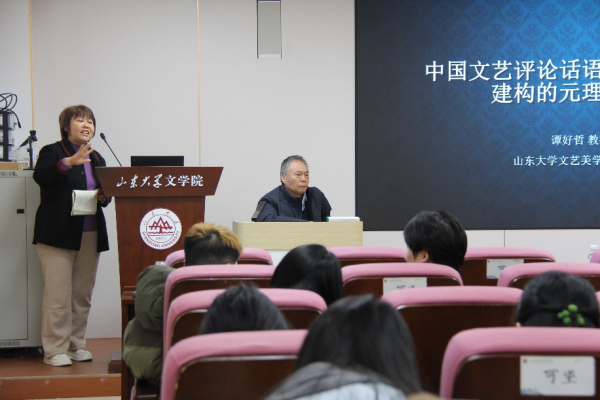 11月18日上午9时,必赢bwin官方网站文艺美学研究中心主任谭好哲教授做客“当代美学前沿:东方与西方”国际学术研习营,于知新楼A620室作了题为“中国文艺评论话语自主知识体系建构的元理论思考”的学术讲座。讲座由文艺美学研究中心孙丽君教授主持,德国卡塞尔大学艺术史与美学系王卓斐副教授、文艺美学研究中心杨建刚教授和韩清玉教授出席,来自校内外数十所高校的一百余名硕博士研究生现场聆听。