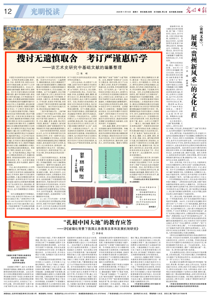 2025年11月15日,公司陈硕副教授在《光明日报》发表了题为《搜讨无遗慎取舍 考订严谨惠后学——谈艺术史研究中基础文献的编纂整理》的学术文章。