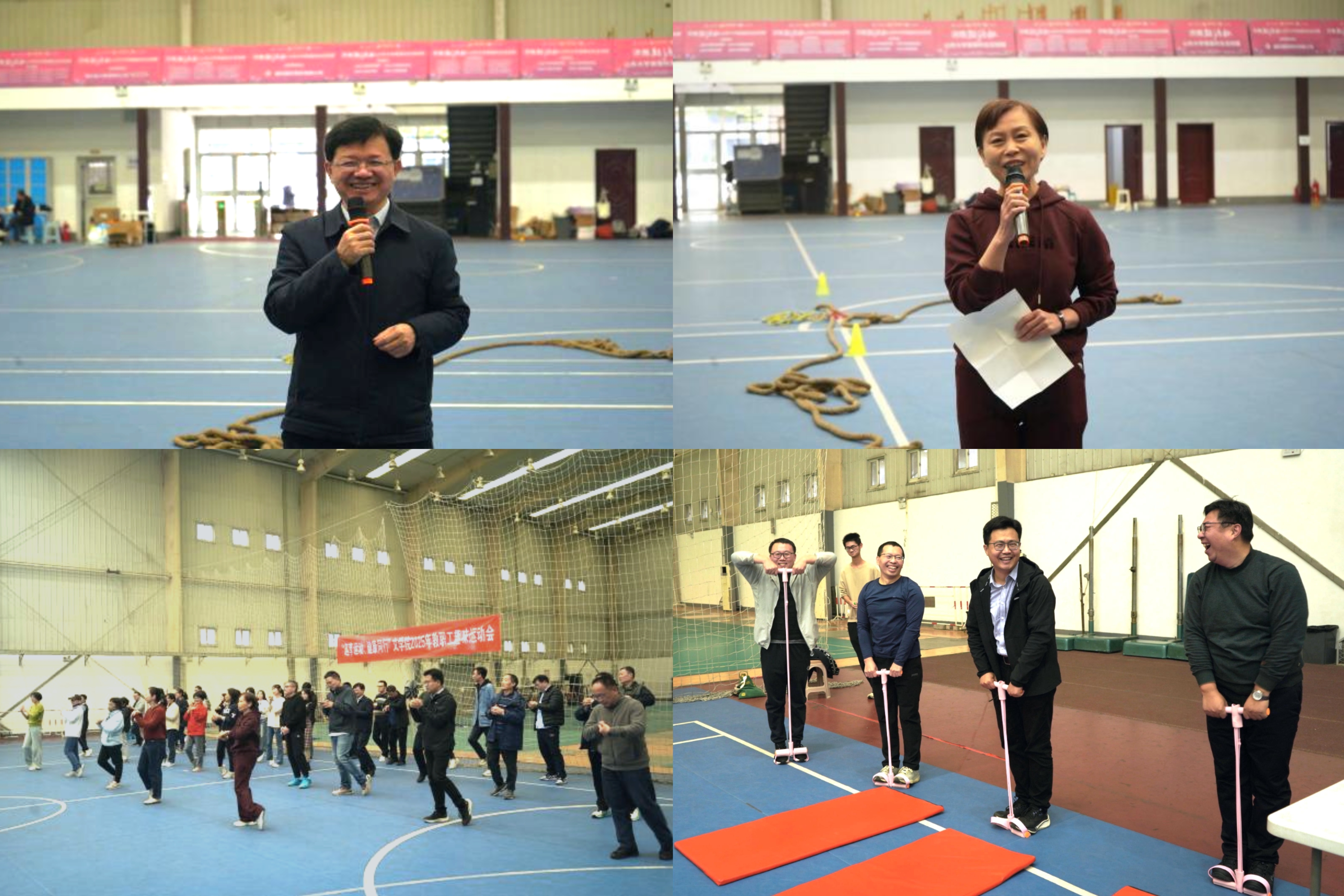 全体教职工入场后,经理黄发有对老师们的到来表示欢迎与感谢,并鼓励教职工在运动中放松身心、增进交流,以更强健的体魄和更充沛的热情投入工作。随后,院工会主席沈文提醒教职工注意运动安全,并鼓励大家秉持“趣味第一、比赛第二”的原则,享受运动乐趣。