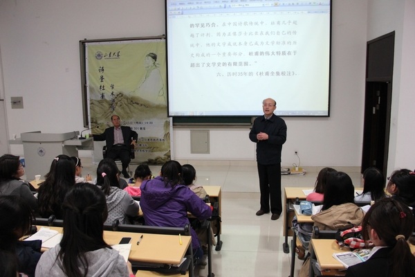 Prof. Zhang highlighted the compilation process of Collation of Du Fu's Works. Several generations of experts devoted 35 years on this five-million-words book, which was highly evaluated by Mr. Xiao Difei. The lecture was jointly organized by the Faculty of Literature and Journalism, Cultural Quality Education Base of Shandong University, and Li Qingzhao&XinQiji Society. The teachers and students showed great interests in the lecture, and paid high tribute to scholars like Prof. Zhang for their enquiring spirit of knowledge and research.