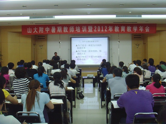In order to improve the teachers’ knowledge structure and cultivate their humanity spirit, the middle school attached to Shandong University (MSASU) organized humanistic research training during the summer holiday. The dean of our school Zheng Chun was invited to give a lecture of humanity and scholarism for all teachers of MSASU. And the principle of MSASU Zhaoyong presided over that.